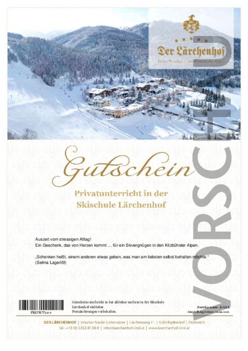 Gutscheine sind nicht in bar ablösbar und nur in der Skischule Lärchenhof einlösbar.